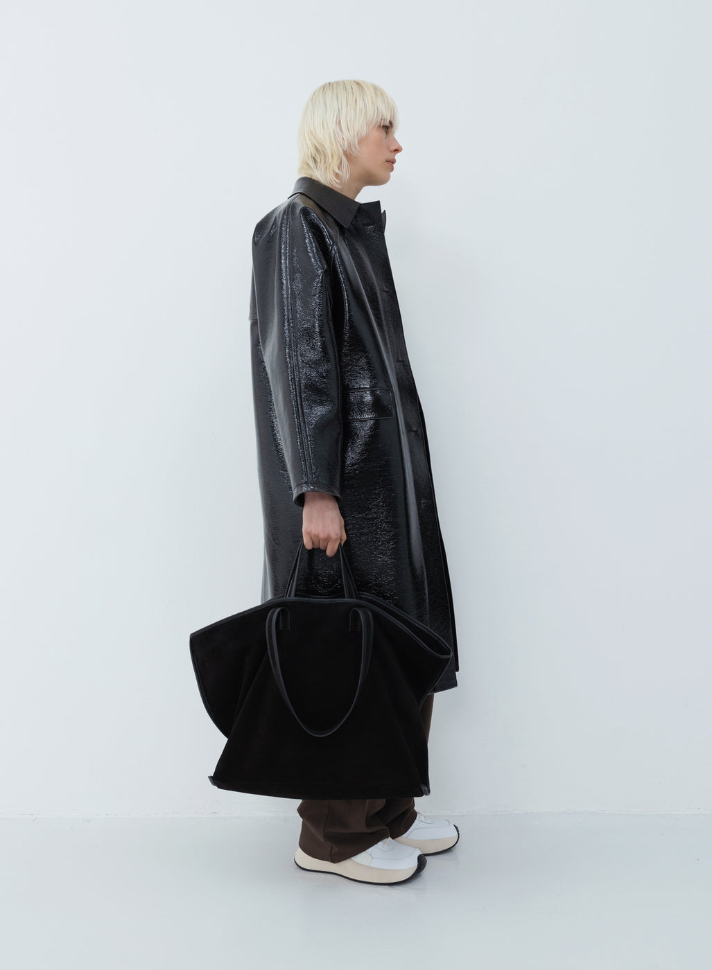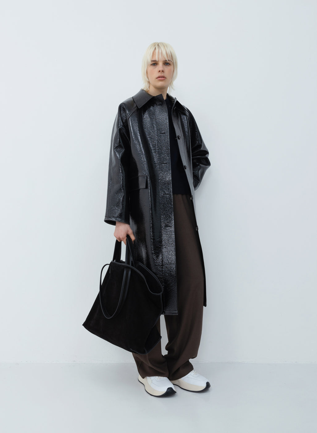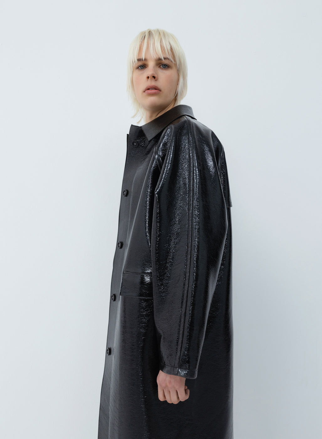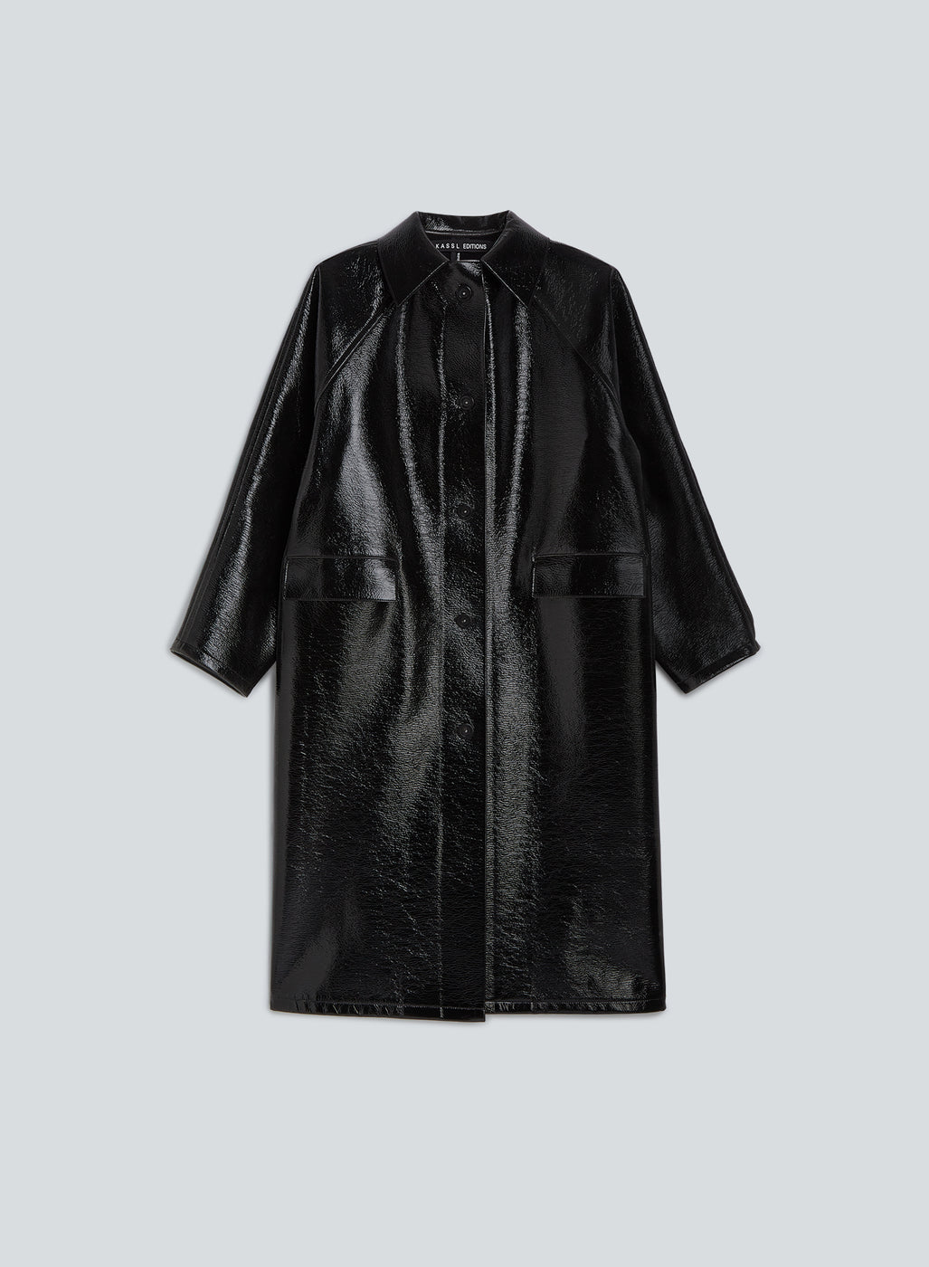 The Original below crafted from the bold and striking lacquer wool in the colour black an all-time favourite and bestseller. Its relaxed and boxy shape with a single-breasted buttoned front, raglan sleeves, split and storm flap on the back are KASSL’s contemporary take on the classic fisherman coat inspiration.