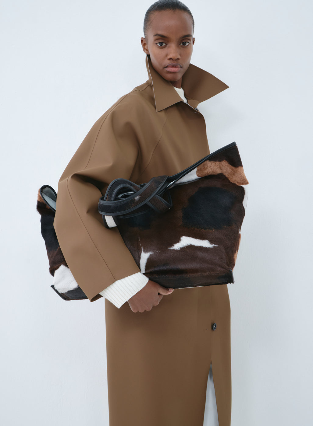 The Tote cowhair multi is crafted from cow leather with a natural hair-on texture, offering both durability and distinctive style. Featuring a hook closure, an inner zip pocket, and an attached slip pocket, it ensures effortless organization. With its bold character and refined practicality, this tote is designed to seamlessly support modern-day life. Each piece features natural cowhair with varying patterns and colors, making every bag one-of-a-kind and unique from the product images.
