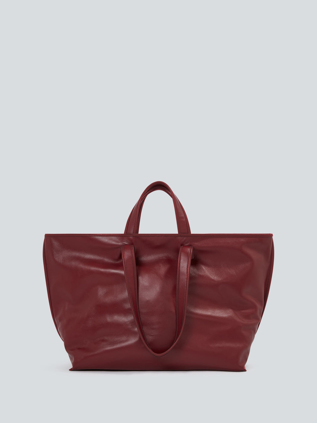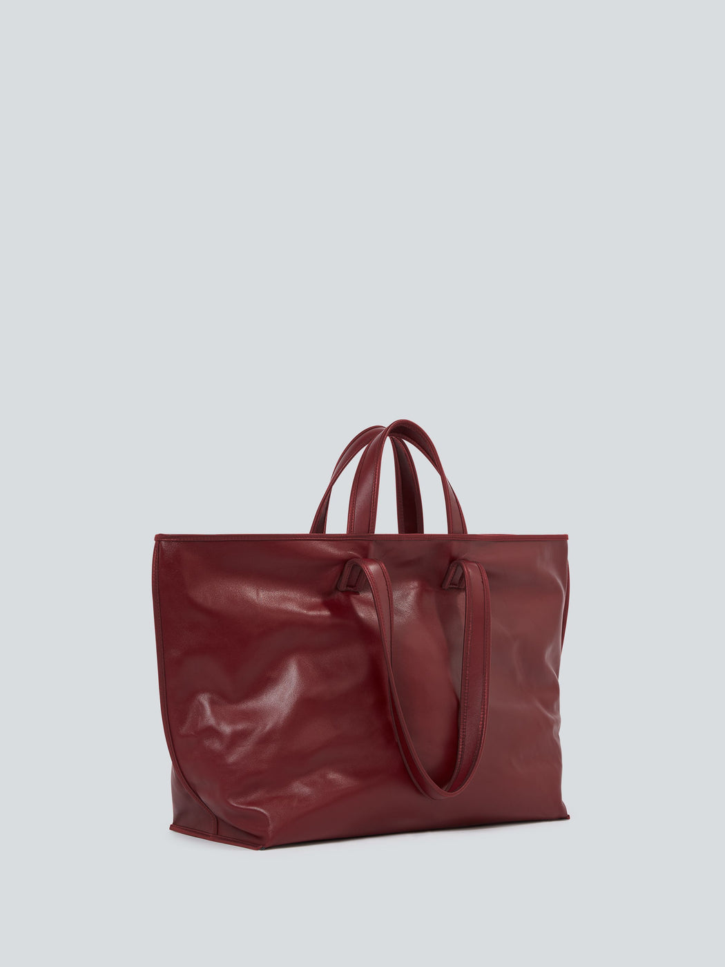 The Tote leather in bordeaux is crafted from durable leather with a smooth texture. The bag comes with two versatile strap lengths and an internal slip pocket. Whether carried by hand or over the shoulder using the additional strap, the Tote canvas is both sophisticated and durable, designed to seamlessly meet the demands of modern-day life while emanating a subtle charm.