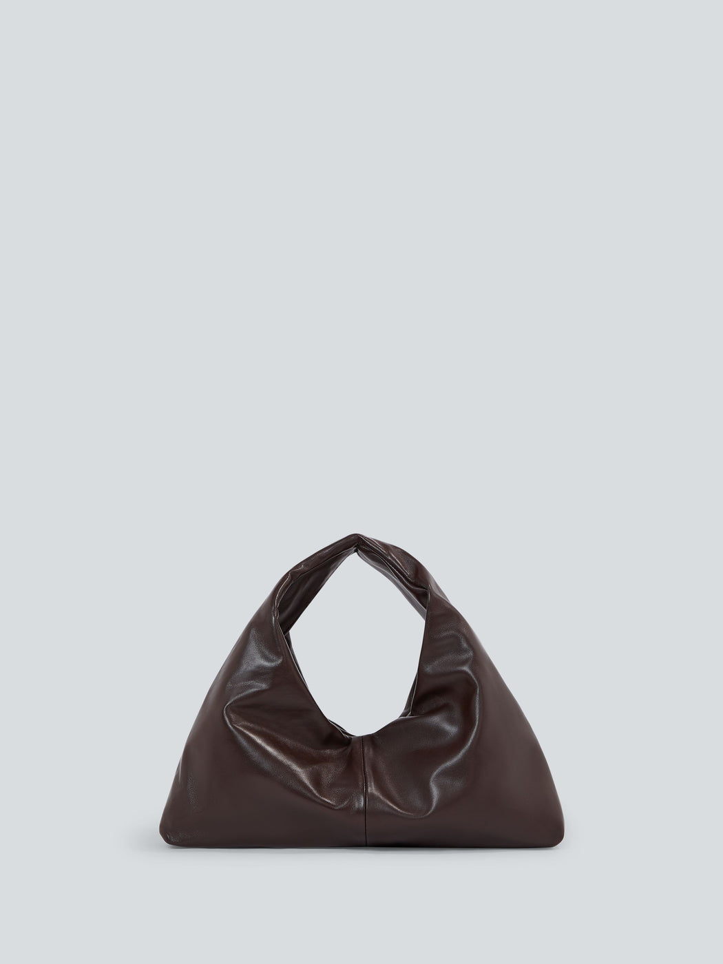 The Anchor small leather in dark brown. Crafted from lamb leather, soft, smooth, and naturally durable. This handbag features an inner drawstring bag with a gun metal cord stopper to keep belongings secure from day to night. The small version can be worn comfortably in your hand or over your shoulder.