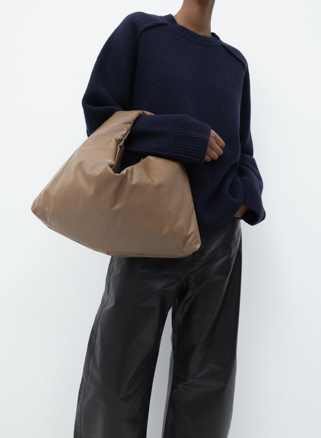 The Anchor hand small oil in camel is crafted from the signature oil coated cotton-blend. A lightly padded handbag featuring an inner drawstring bag, keeping belongings secure as day turns to night. The small version can be worn comfortably in your hand or around your shoulder.